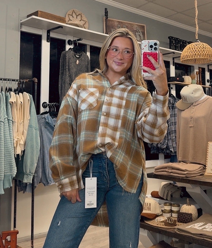 If this flannel doesn’t scream fall then I don’t know what does?! It’s mustards and greens! They do run oversized and have the raw hem detail. You can size down!