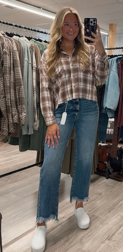 This is a really pretty neutral light weight flannel! Perfect fall colors with the browns and taupes! Super soft and light, perfect for that Florida fall! True to size, relaxed. Functional buttons!