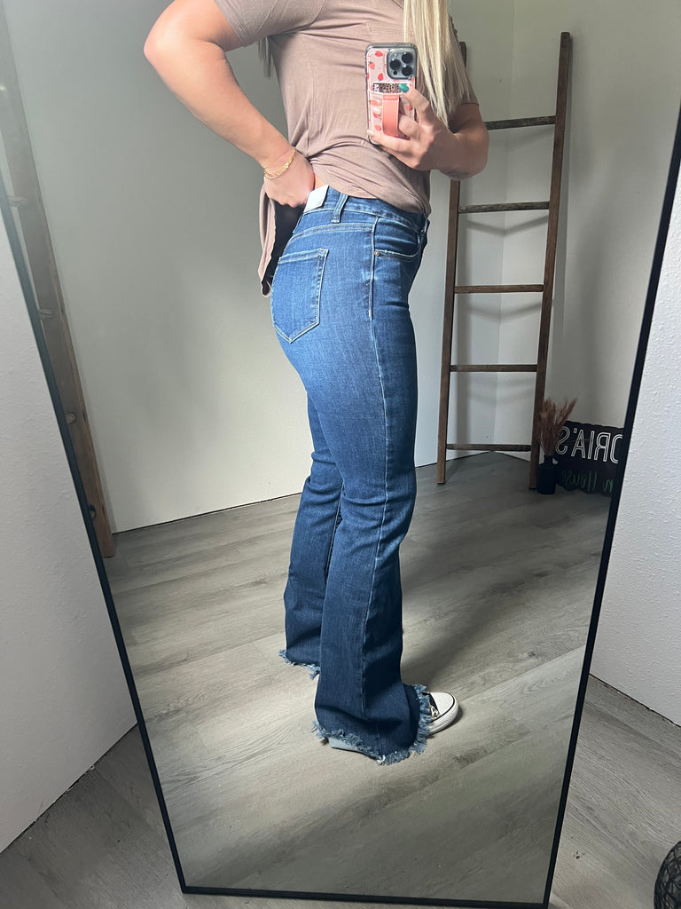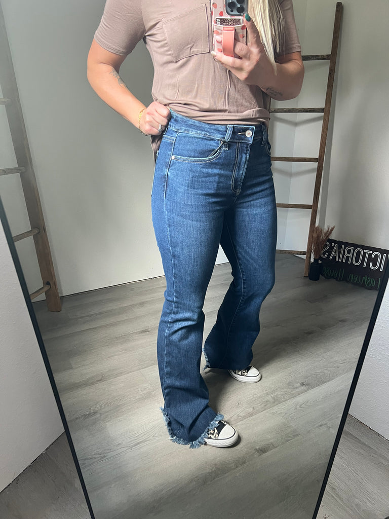 These are Zenana brand! Nice and stretchy and fit like a glove! I’m actually in a size 5!!! I’m normally a size 7. They are long on me but I love the fit, the wash, and the distressed at the bottom. Perfect fall jeans!
