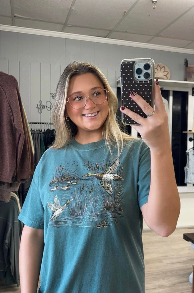 Talk about the prettiest comfort color tee I we have ever had!!!! It is called blue spruce, and it had the cutest retro duck print!